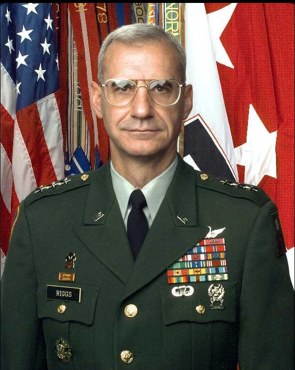 General John M. Riggs was assigned to the Director of the Objective Force Task Force (OFTF) at the time of his retirement.