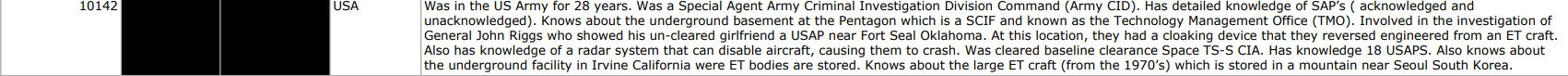 While exploring the new Steven Greer archive at dpiarchive.com, I came across a witness listed as #101432 within the database.